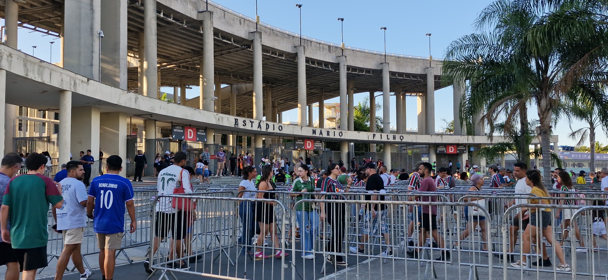 Mais um dia que o número de turistas que vem ao Maracanã só aumenta. Até em alguns dos acessos já tem orientação em inglês também. A chegada dos tricolores foi como o habitual, geralmente mais em cima da hora. Um dia lindo no Rio, que, pela manhã, fez até um friozinho, mas na hora do jogo a temperatura girava nos 28 graus, o que – para os cariocas – é só um calorzinho.