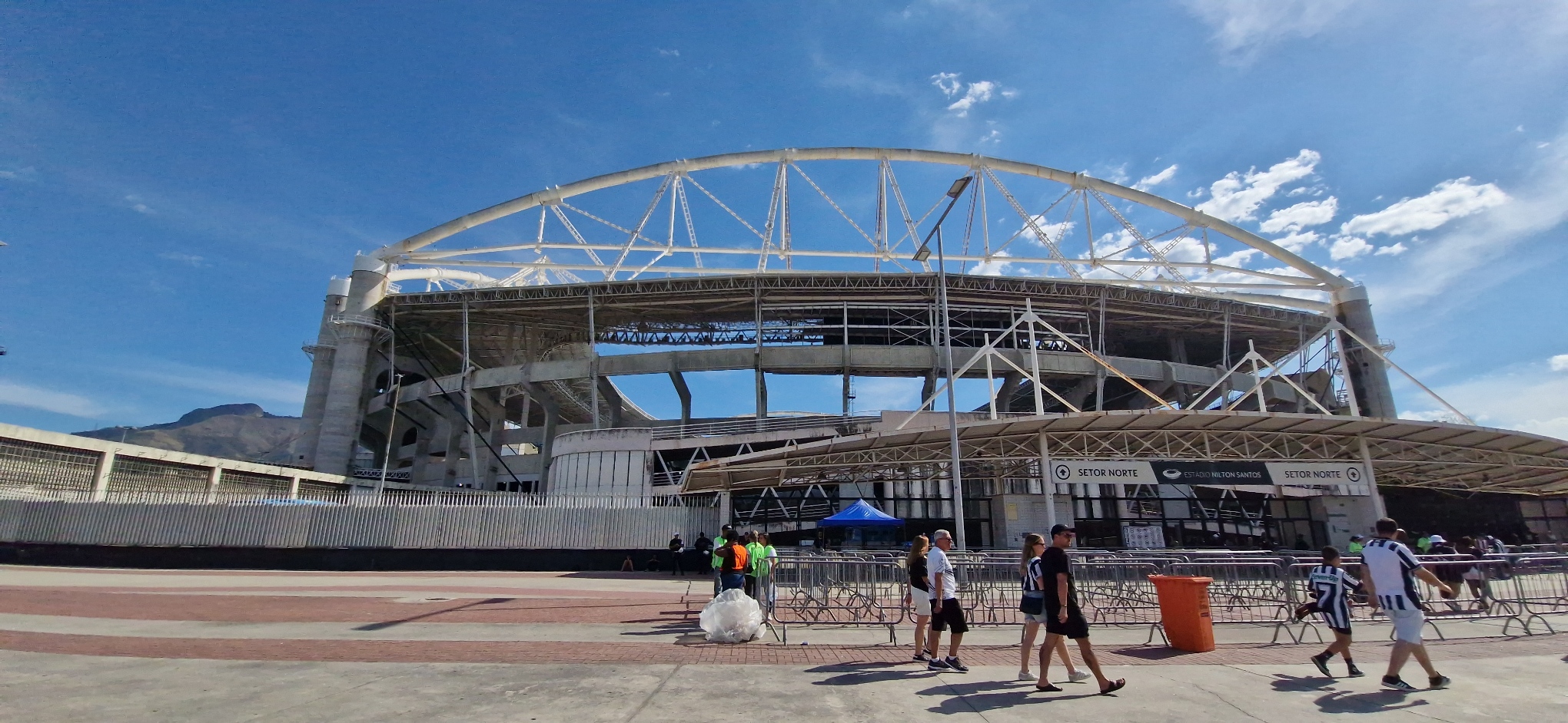 No acesso do Setor Leste, o point passou a ser antes do acesso da Rua Dr. Padilha, onde todo mundo se concentra. Na frente da entrada estava difícil porque ficar parado ali debaixo do sol a pino não era a melhor escolha. Era chegar e entrar. Imagina que ficou nas arquibancadas nos primeiros minutos de jogo… É a praia do Leste.