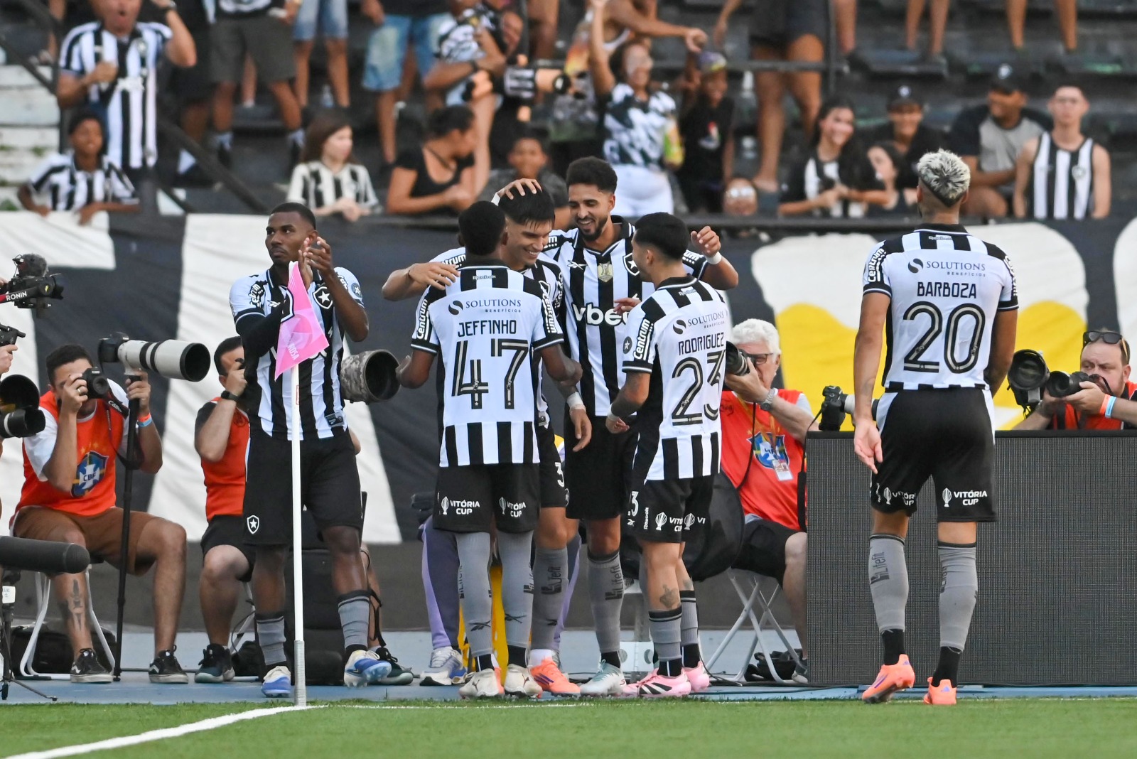 Jogo começou com um gol relâmpago e parece que foi o mais rápido do Brasileirão 2025. Em 22 segundos, o Botafogo tirou a bola do Santos que deu a saída de bola e abriu o placar, com Joaquim Correa. Uma comemoração ainda mais especial já que foi a primeira vez que ele balançou as redes desde que foi contratado e a velocidade da jogada. O lance, lógico, desequilibrou o Santos, mas que conseguiu parar e pensar para retomar a partida. Mas com isso, o Botafogo entrou mais embalado na partida.