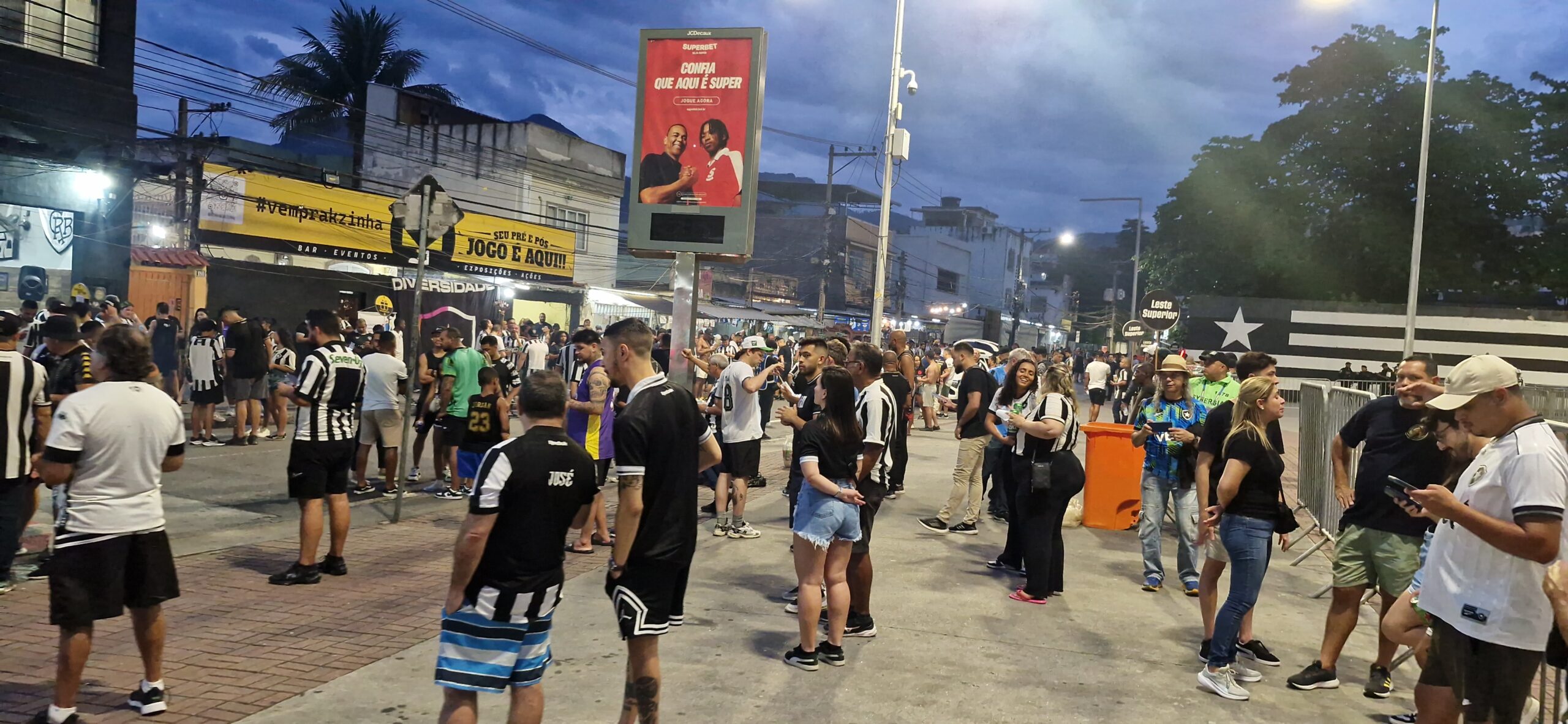 Apesar do problema da hora do rush em função do horário do jogo, não registramos problemas na chegada de torcedores de Botafogo e Vasco para o clássico, com início às 19h30. Seguindo alguns caminhos alternativos não demoramos para chegar e por causa daqueles 15 minutos de antecedência, evitamos qualquer interrupção do trânsito na Rua das Oficinas para a chegada dos times.