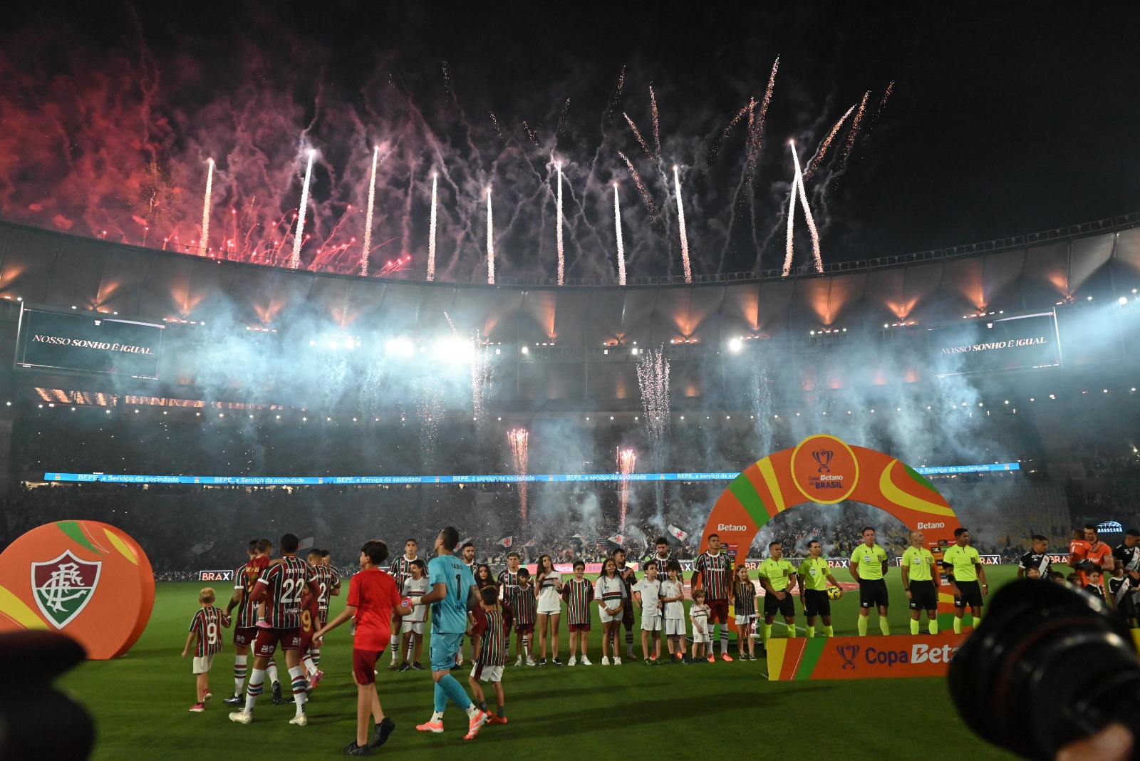 E é claro, músicas entoadas a plenos pulmões pelas torcidas de Vasco e Fluminense. Um verdadeiro show no Maracanã coroados com uma belíssima queima de fogos enquanto os jogadores perfilados se preparavam para o hino nacional.