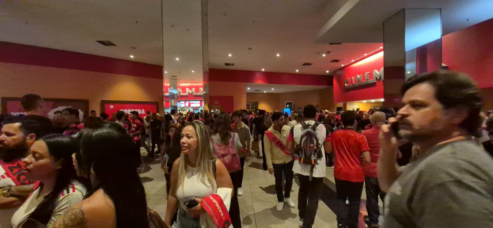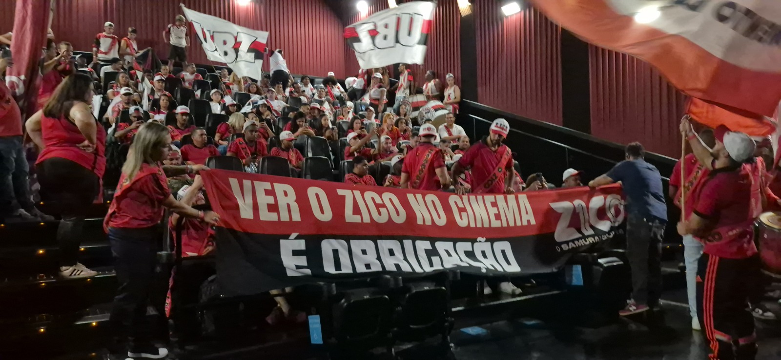 A maioria das pessoas não imaginava que a pré-estreia reuniria tanta gente, transformando o espaço em um “estádio” Escadas rolantes, as salas, corredores e o espaço do Downtown tiveram um movimento e uma emoção diferentes. Quem entrava para a sessão ganhava uma faixa com vários Zicos e ganhamos um álbum de figurinhas que vai para nosso acervo.